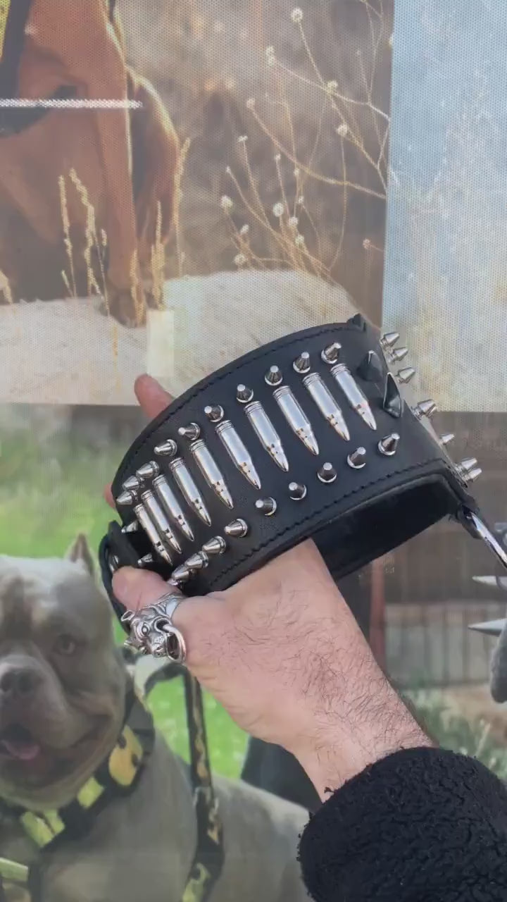 handmade dog collar, bullet design dog collar, leather dog collar for large breeds, luxury dog collar with leash, genuine leather dog collar, durable dog collar, large breed dog accessories, Rottweiler collar, Cane Corso collar, German Shepherd collar, Pitbull collar, big dog collar with leash, stylish dog collar and leash set, premium leather dog accessories, unique dog collar.